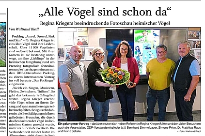 „Alle Vögel sind schon da" Regina Kriegers beeindruckende Fotoschau heimischer Vögel