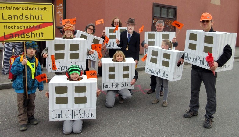 Schulkinder, die im Container unterrichtet werden müssen und ein OB mit leeren Taschen, der die hochverschuldete Stadt repräsentiert: Wer keine…