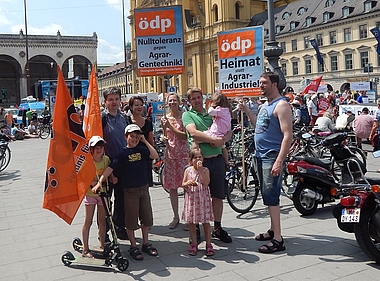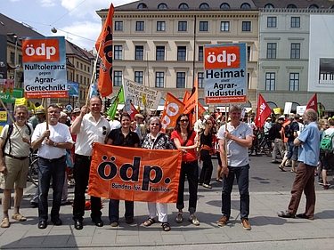 Gegen Agarindustrie und Flächenfraß: ÖDP Bayern demonstriert vor der Staatskanzlei