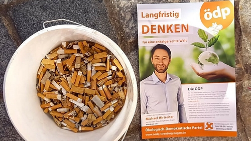 ÖDP-Aktive sammeln Zigarettenkippen ein