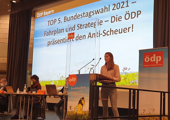 Am vergangenen Wochenende hat sich die designierte Gegenkandidatin in Straubing den Delegierten der bayerischen ÖDP vorgestellt. Ihre Rede wurde mit stehendem Applaus quittiert. Eigentlich sollte sie in der Fraunhofer-Halle vor den 240 Delegierten des Landesparteitages sprechen. Die Versammlung wurde jedoch wegen Corona kurzfristig auf einen kleinen Parteitag mit 40 Teilnehmern verkleinert.
