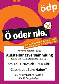 Am 12.11.25 hat die ÖDP-Kreisverband Deggendorf Ihre Liste für die Stadtratswahl in Osterhofen im kommenden Jahr aufgestellt. Die Versammlung im…